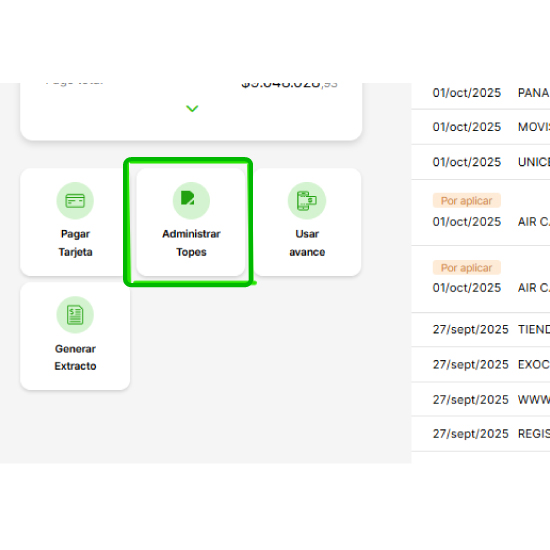 Desde la Zona Transaccional de la página web del Banco Popular, tienes la opción de establecer topes para: