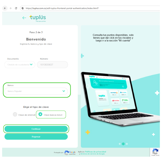 Ingresa los dígitos de seguridad que llegaron a tu celular registrado en Banco Popular. Listo ya redimiste tus puntos!
