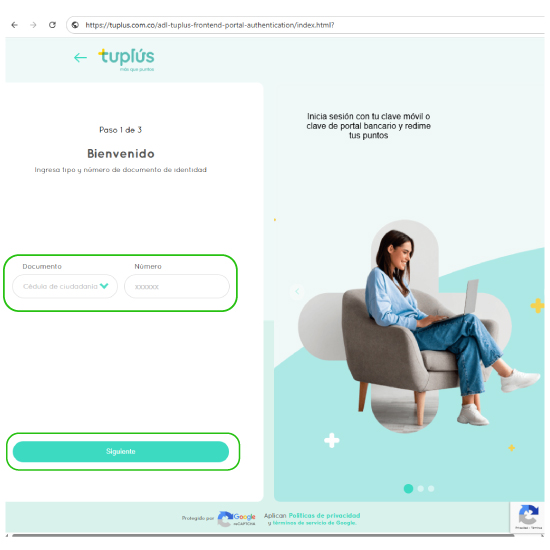 Ingresa a www.tuplús.com.co con tu número de identificación y clave de 4 dígitos.
