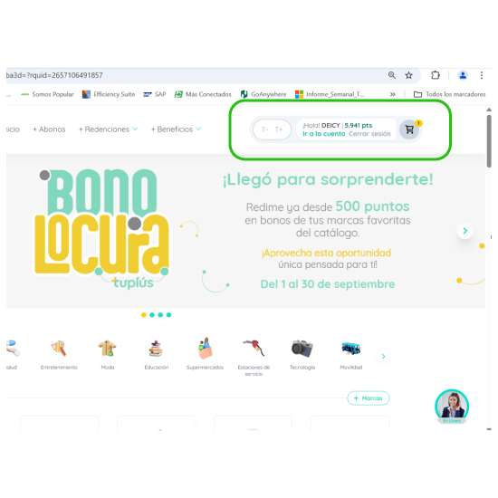 En la parte superior derecha encontraras la cantidad de puntos que tienes disponibles para usar.